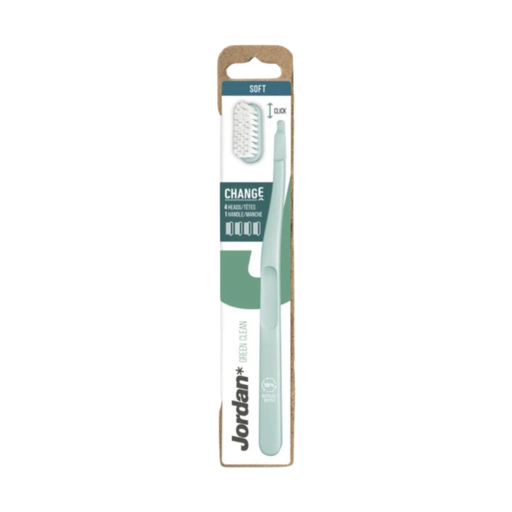 Deze lichtgroene tandenborstel is bedoeld voor hergebruik. Alleen de borstelkopjes vervang je. Het handvat gebruik je keer op keer opnieuw. Zo voorkom je onnodig plastic afval en hoef je minder vaak weg te gooien.