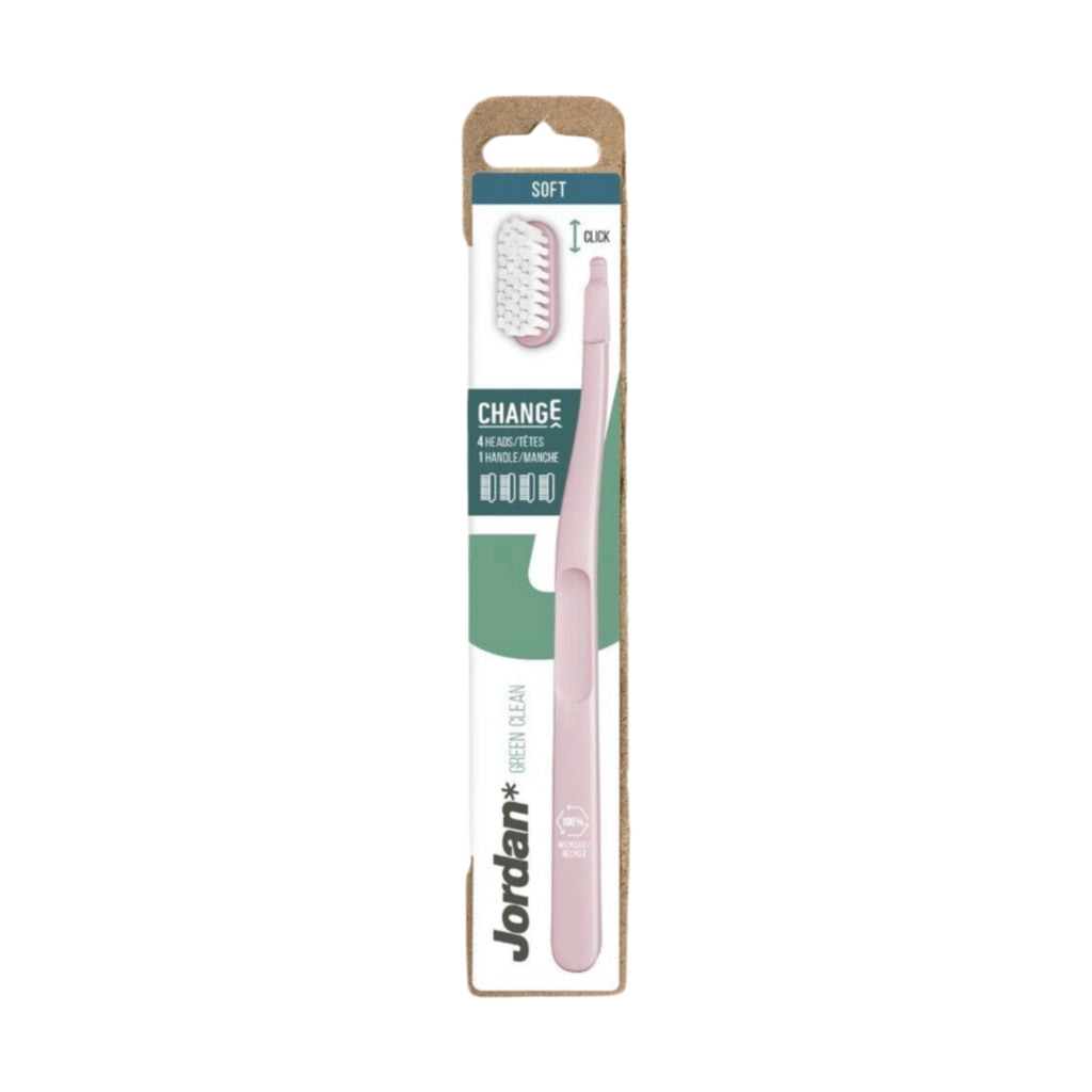 Met deze lichtroze tandenborstel hoef je niet steeds iets nieuws te kopen. Je klikt gewoon een nieuw borsteltje op het bestaande handvat. Dat is makkelijk en beter voor het milieu. De zachte kleur past goed bij wie houdt van iets subtiels.